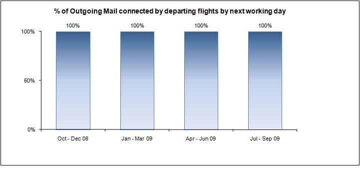 (b) % of outgoing mail connected by departing flights by next working day (S)