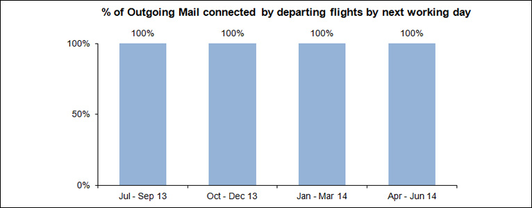 (b) % of outgoing mail processed and connected to departing flights by next working day