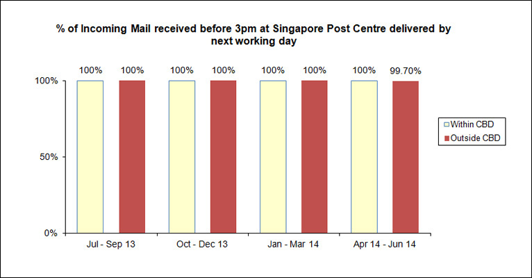 (c) % of mail received before 3pm at Singapore Post Centre delivered by next working day