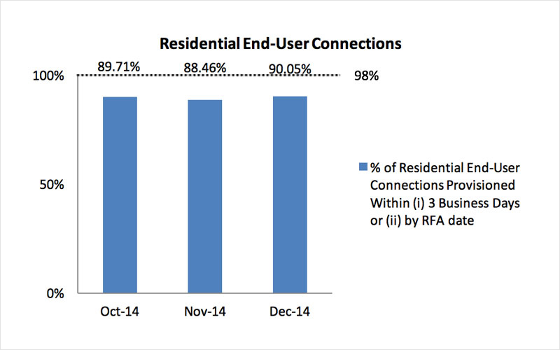 2. Percentage of Residential End-User Connections Provisioned within (i) Seven Business Days of the Date of the Service Order or (ii) by RFA Date + 4 Business Days